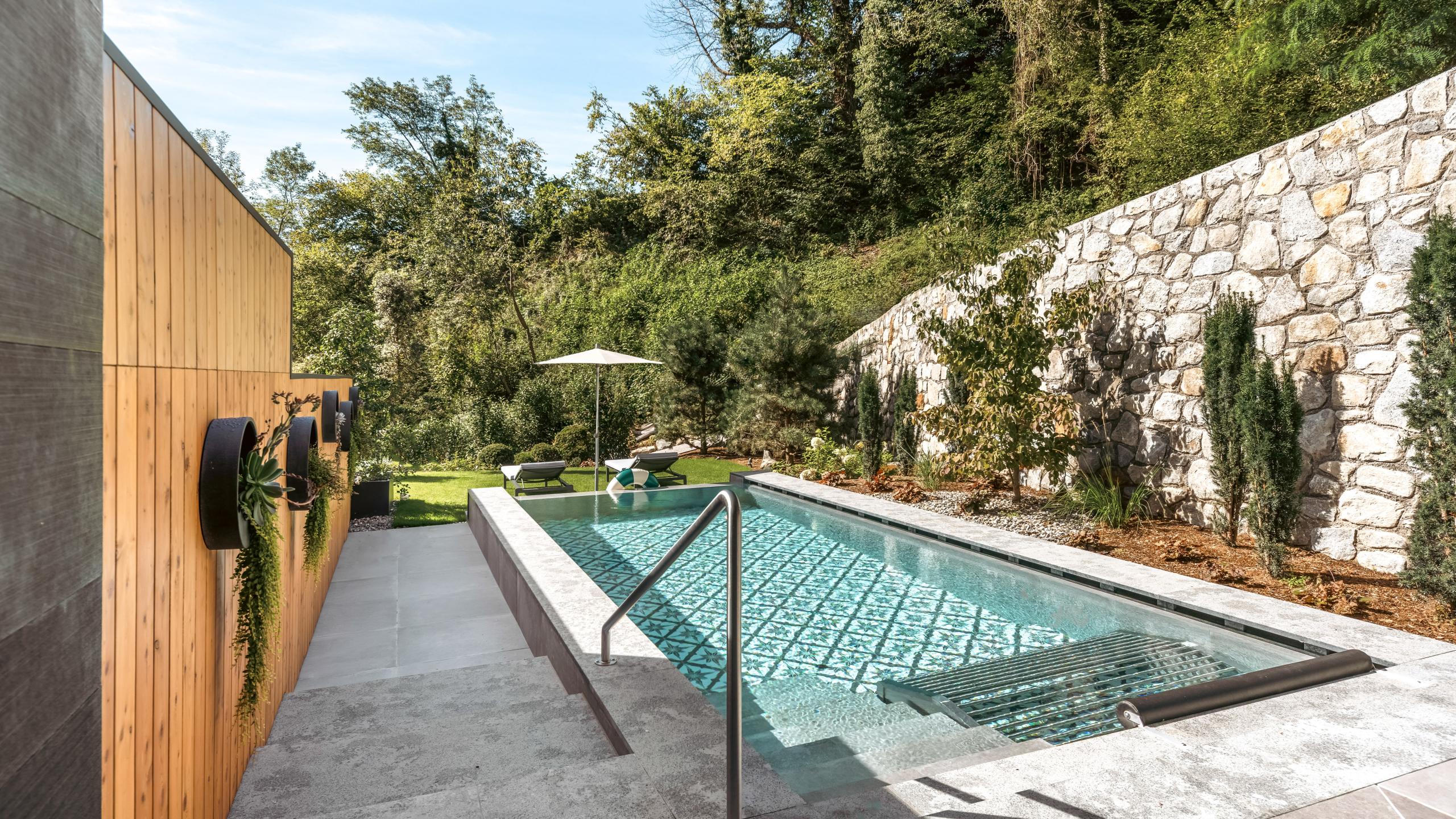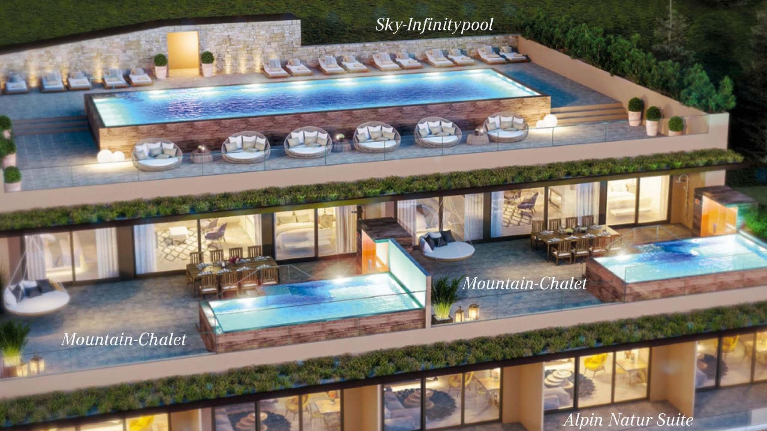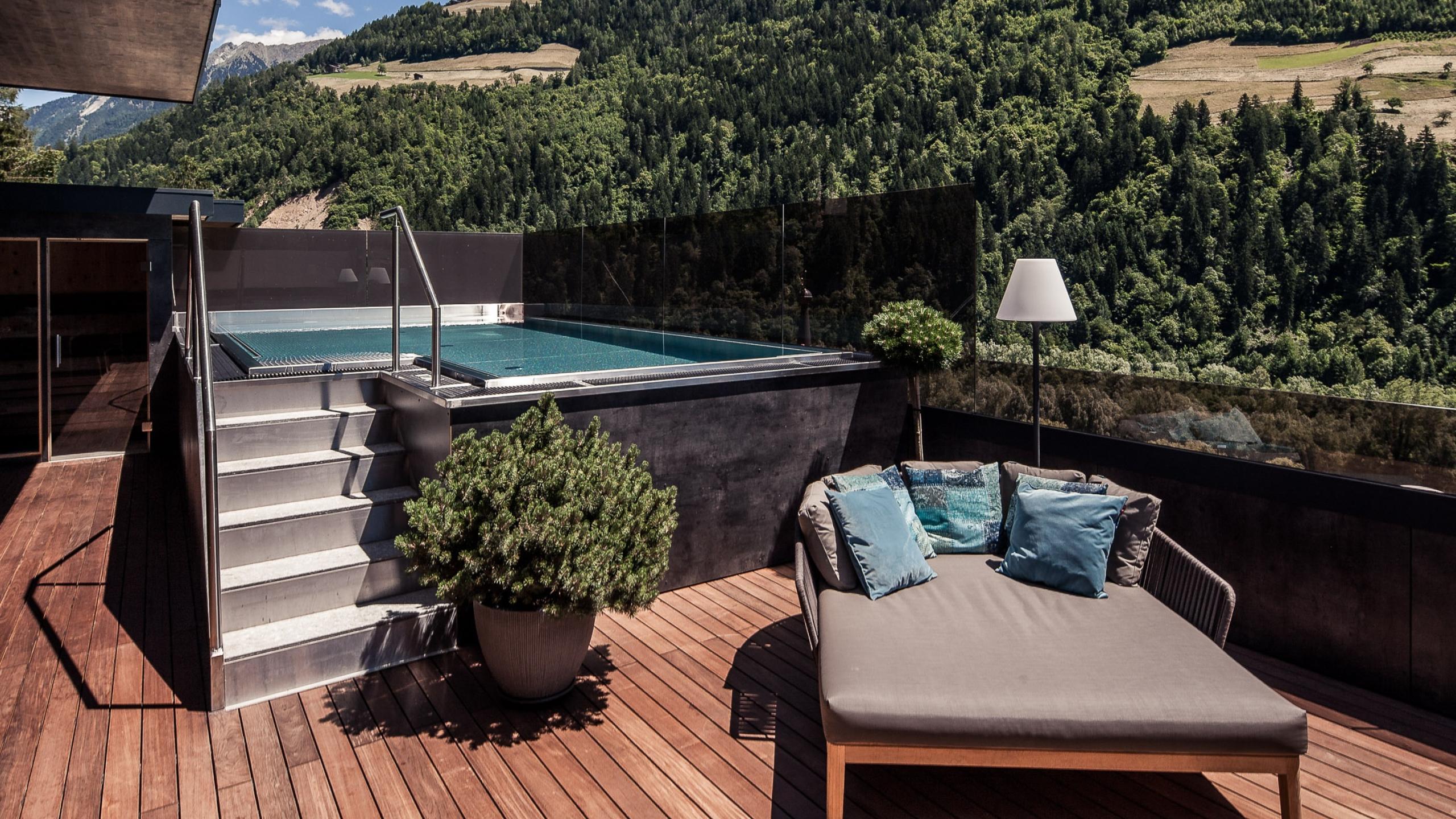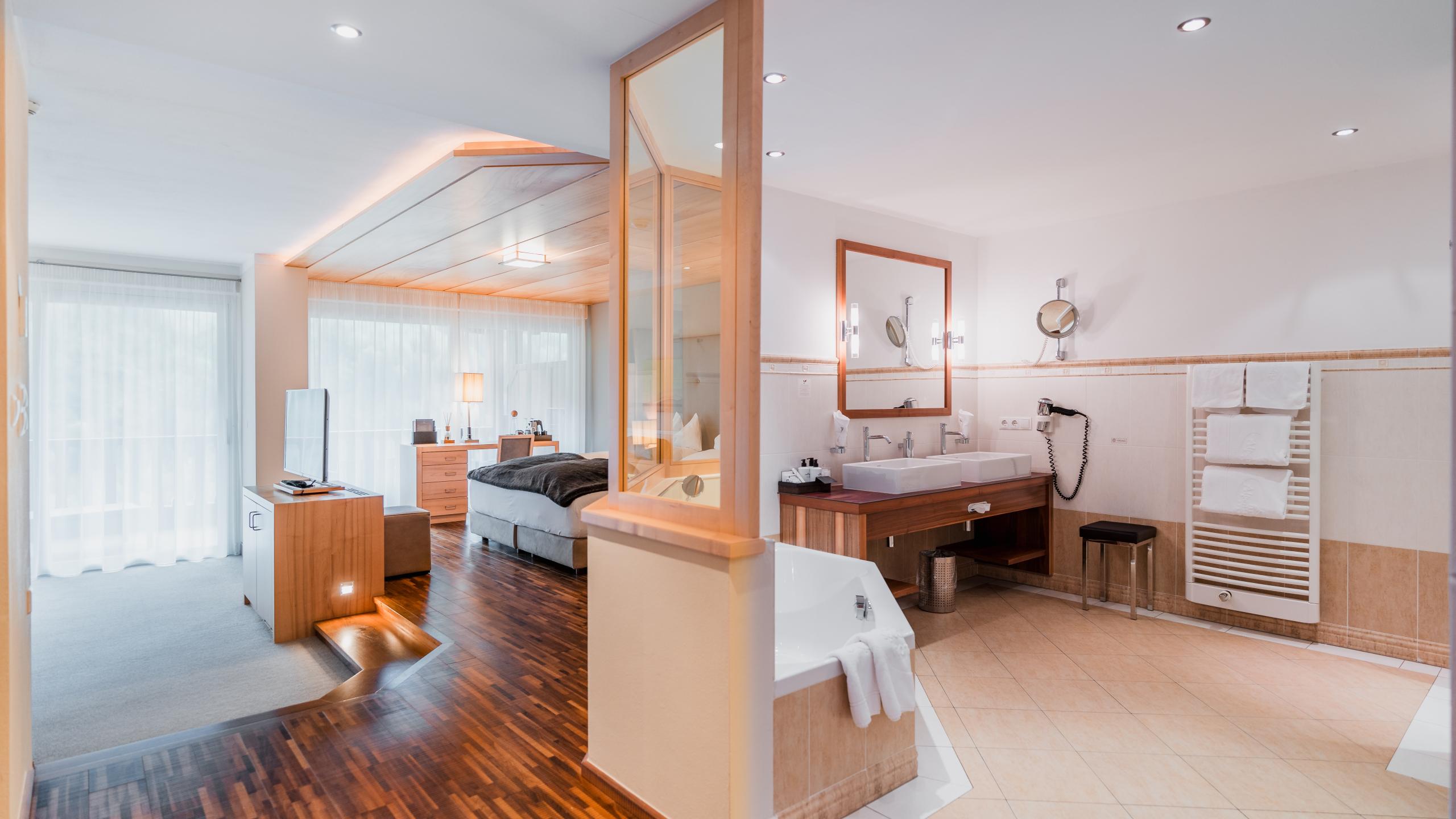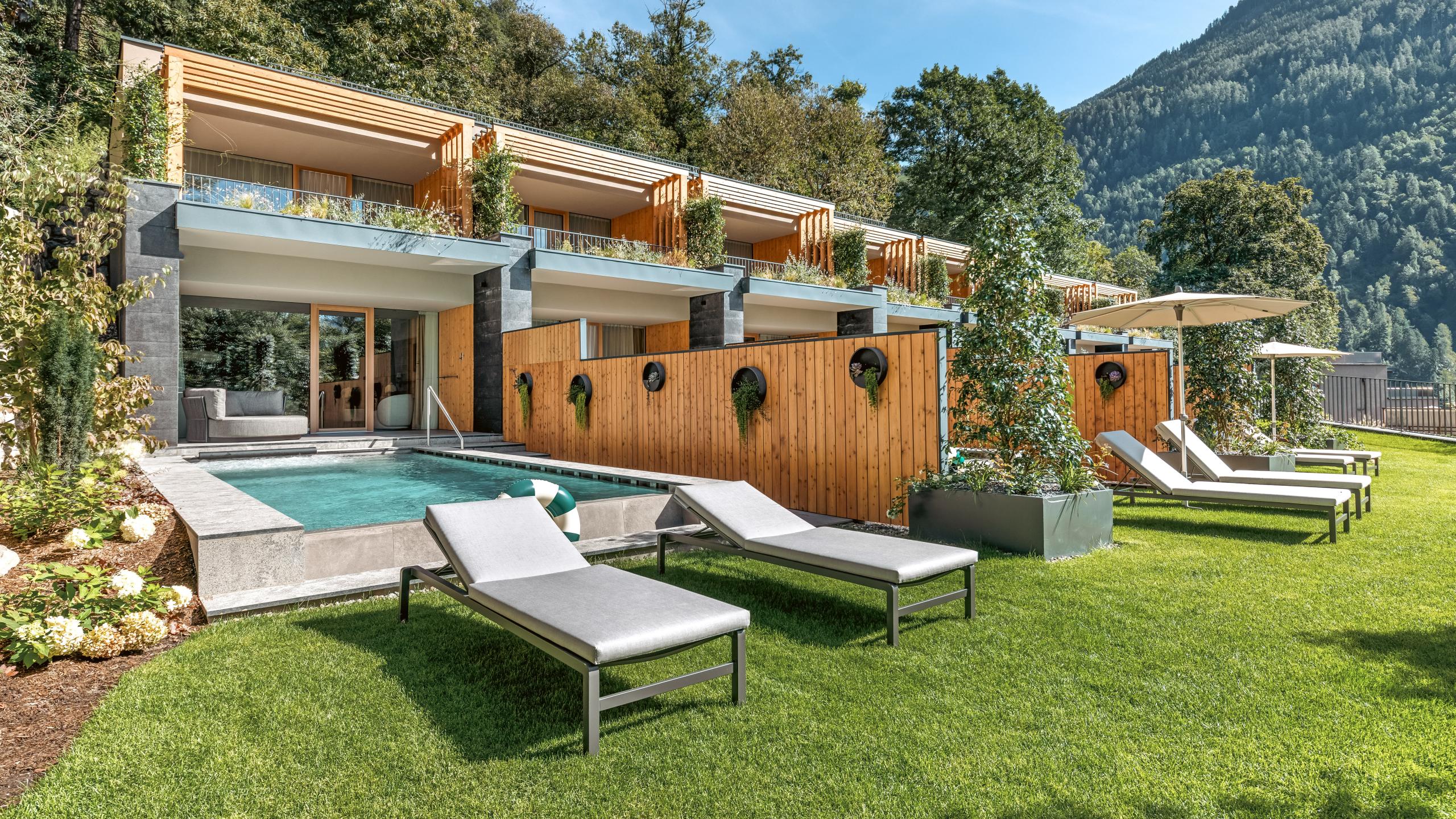 Direkt am Waldrand gelegen, inmitten der Natur, entstanden 16 moderne Suiten auf 2 Etagen. Insgesamt 1 Familien-Suite, 7 Relax Suiten mit Balkon, 4 Relax Spa Suiten mit privatem Whirlpool und Zugang zum Garten und 3 Relax Pool Suiten mit privatem Pool und Gartenzugang laden zum (Wohn-)Träumen ein.