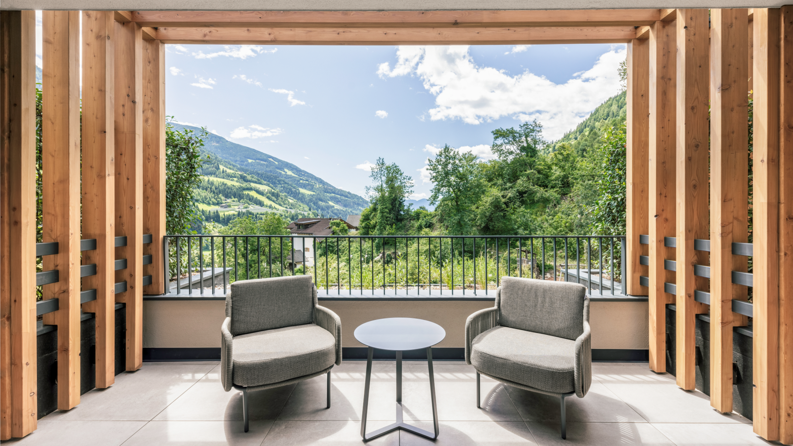 Seit Juni 2025 präsentiert sich oberhalb des Hotels unser moderner, ganz in Naturmaterialien gehaltener Neubau.