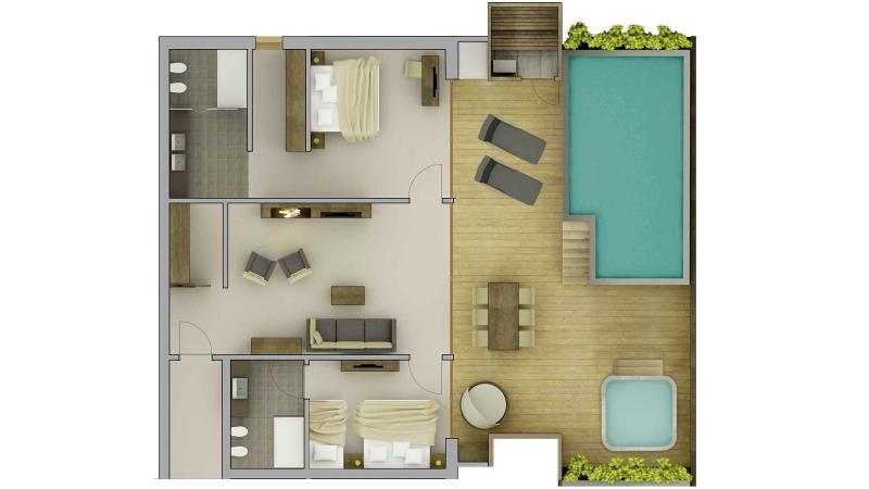 für 2-5 Personen, ca. 180 m² (davon 90 m² exklusive Südterrasse mit Infinity-Pool 6 x 3 m, Hot-Whirlpool und Sauna). Luxus- Chalet mit 2 Schlafzimmern und komfortablen Box-Springbetten (1 Schlafzimmer mit zusätzlichem 3. Bett), Badezimmer mit Regen-Relaxdusche, großzügigem Wohnraum mit Kamin, Wasserkocher mit kleinem Tee- und Kaffeesortiment, Nespresso-Kaffeemaschine, Musikanlage SONOS, individuell regulierbarer Klimaanlage und Holzboden. Tiefgarage inklusive.